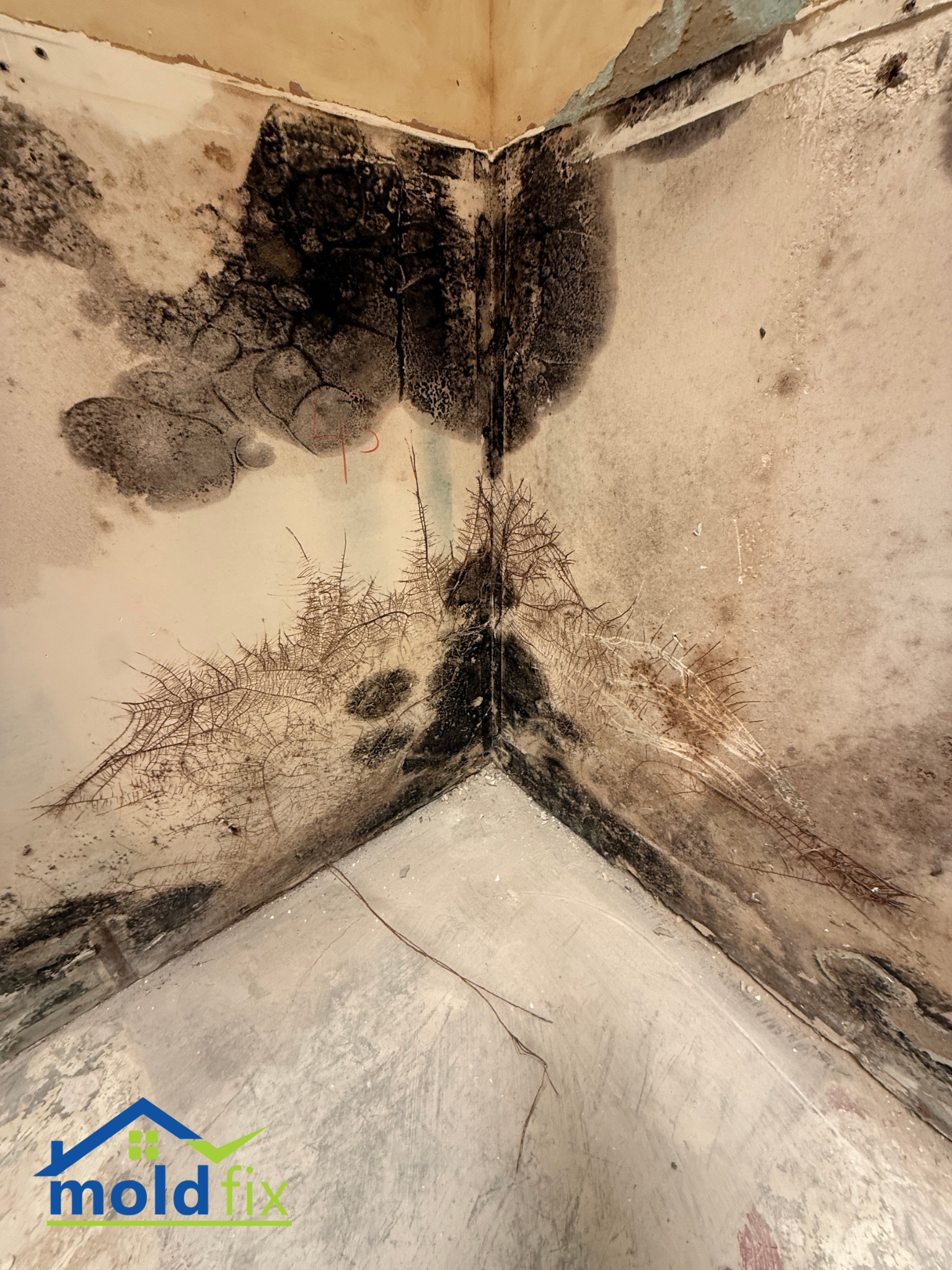 - Heavy mold growth concentrated in the corner